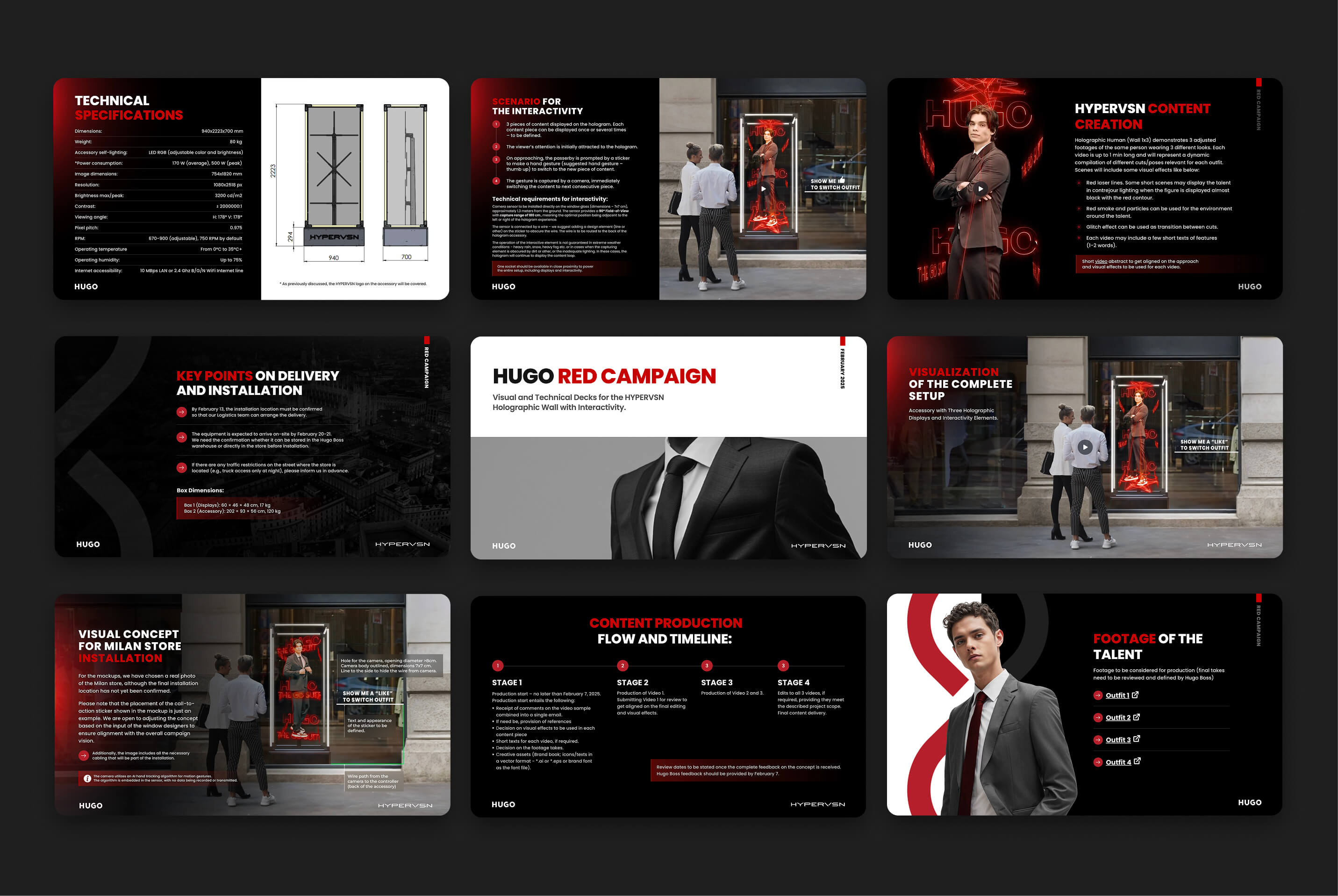 HUGO needed to approve a costly holographic retail installation without a physical prototype. Stakeholders couldn't visualize how the technology would integrate into their Milan storefront, while technical teams lacked specifications for precise hardware placement.