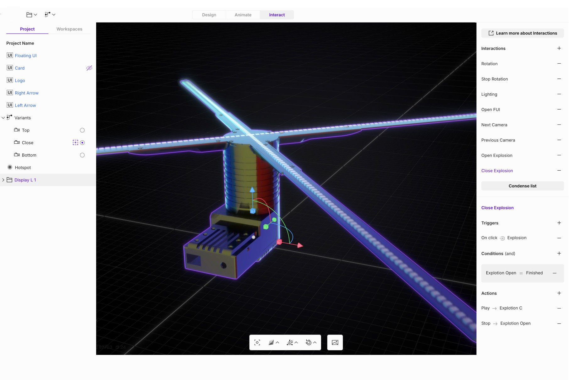 • Dynamic explosion animation with user-triggered or auto-play options